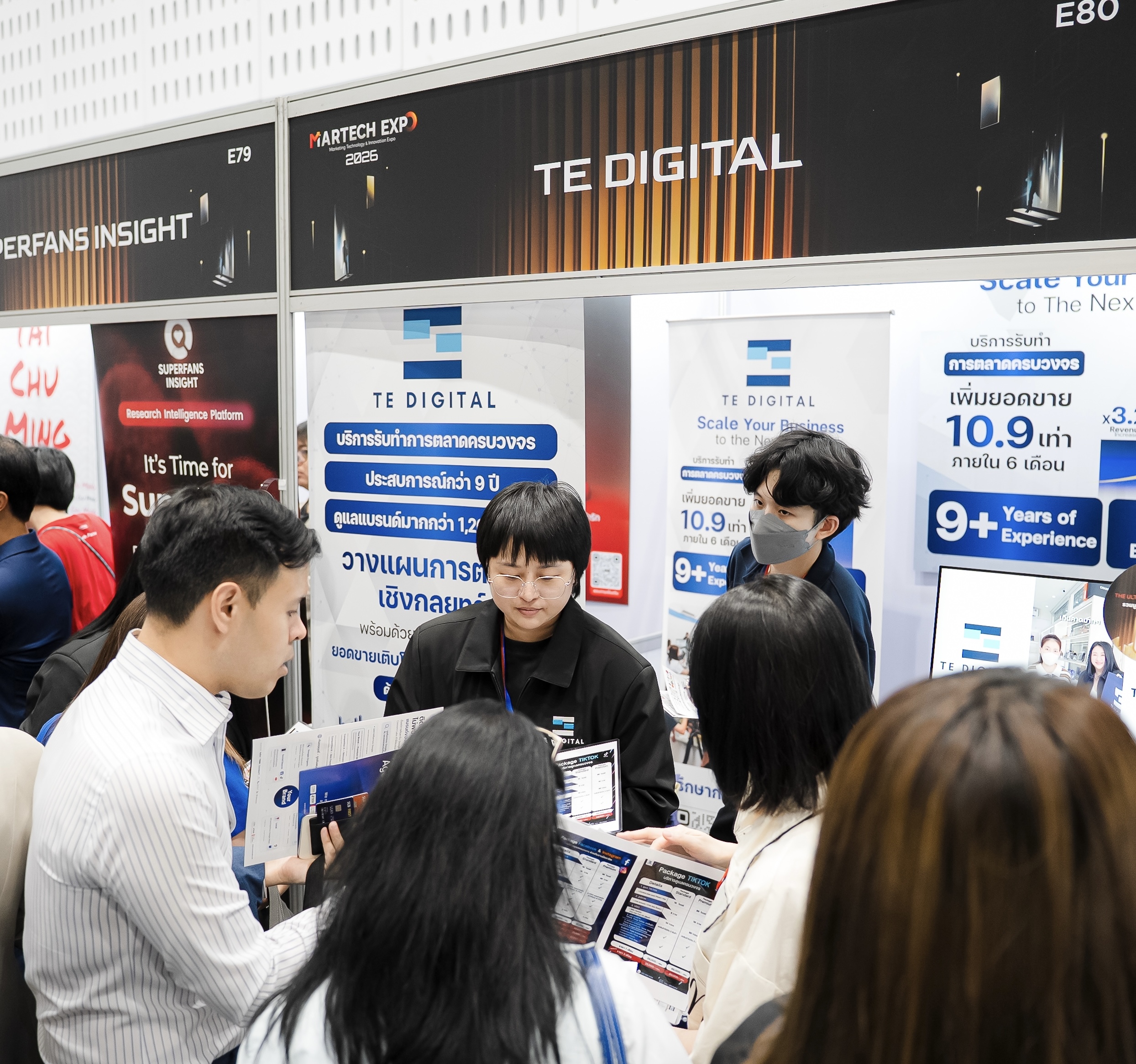 ภายในงาน MarTech Expo 2026 ทีมงาน TE Digital ได้มีโอกาสต้อนรับ พูดคุย และให้คำปรึกษากับเจ้าของแบรนด์และผู้ประกอบการจากหลากหลายอุตสาหกรรม ไม่ว่าจะเป็นธุรกิจสินค้าอุปโภคบริโภค สินค้าทางด้านอาหาร ธุรกิจความงาม ธุรกิจบริการ รวมถึงแบรนด์ที่กำลังเริ่มต้นสร้างตัวตนบนโลกออนไลน์